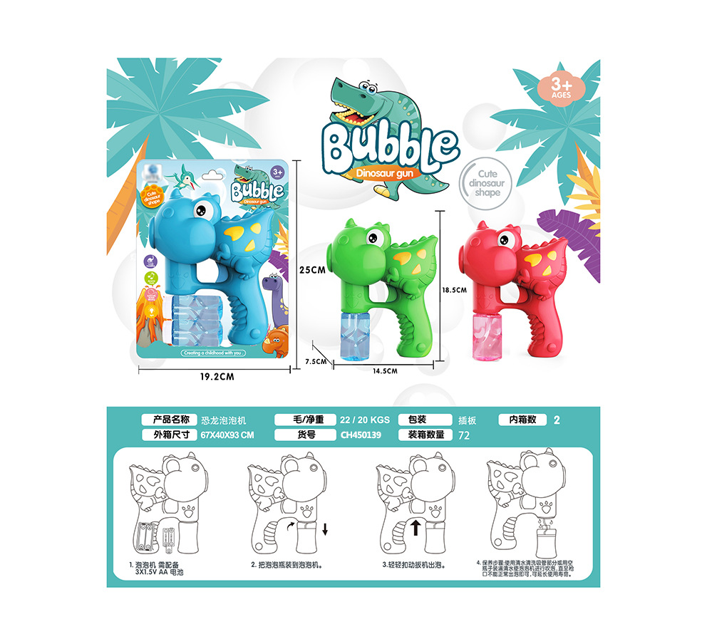 CH450139 恐龙泡泡枪(3色混装)Dinosaur Bubble Gun (3 color mix)